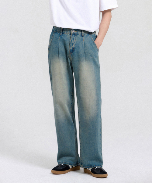 리드 하프밴딩 원턱 세미 와이드 데님 팬츠 (Vintage Blue)