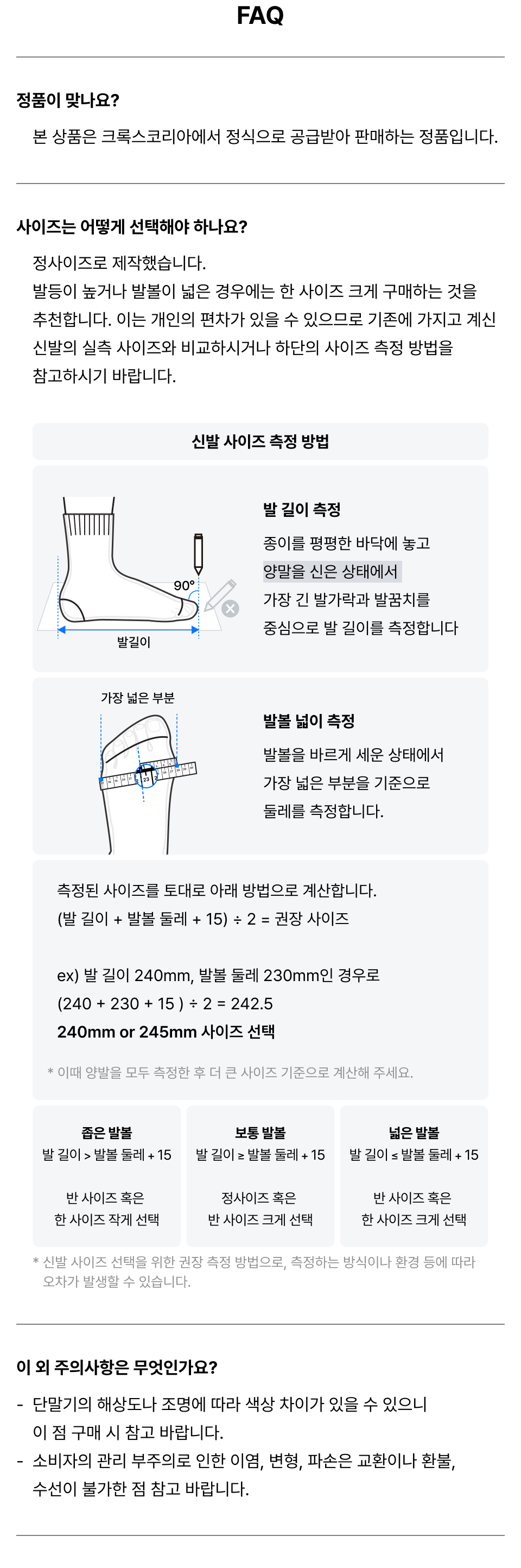 CROCS(크록스)는 미국 콜로라도 볼더에서 소박하면서도 편안한 보트 슈즈로 시작한 크록스 슈즈는 오늘날 수백스타일의 남성용, 여성용, 어린이용 스타일이 전세계에서 판매되고 있습니다. 차별화된 컬렉션을 가지고 있는 크록스는 사계절, 어느때나 잘 어울리며 컬러풀하고 가벼워 편안함을 드립니다.
