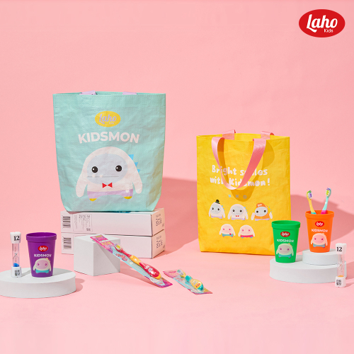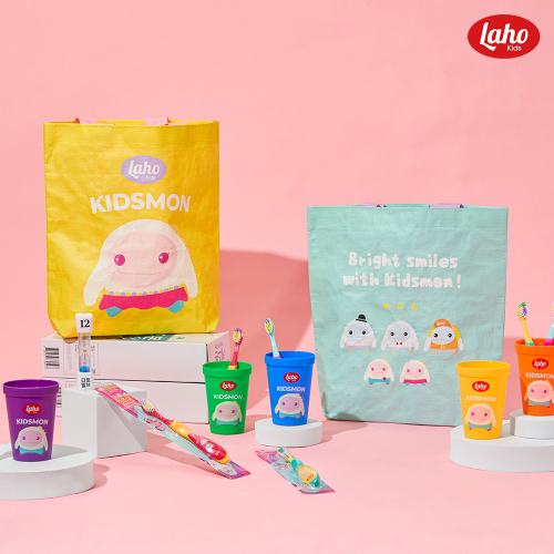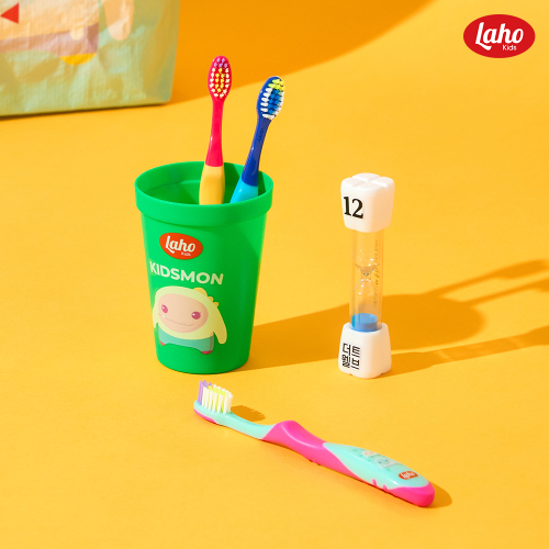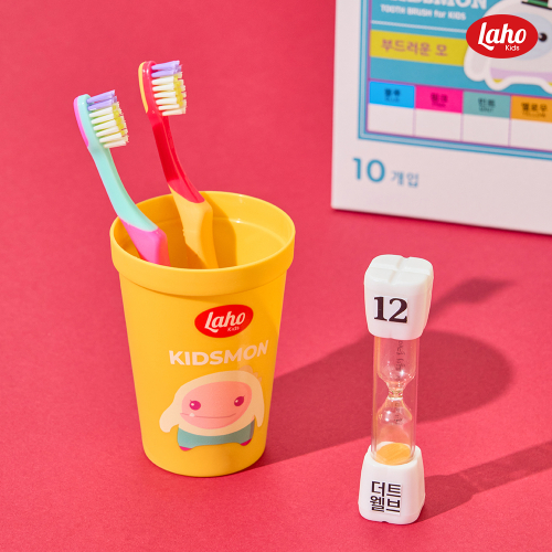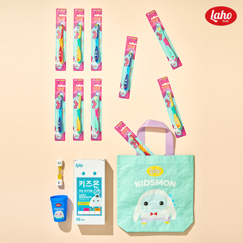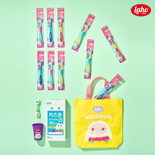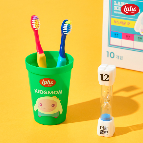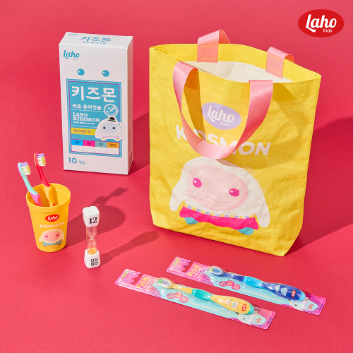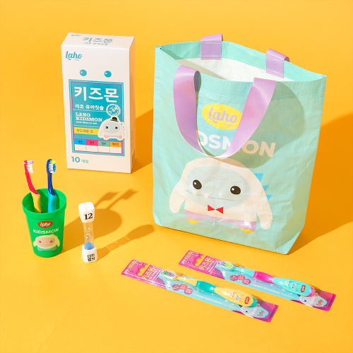 라호 키즈몬 어린이칫솔 10개+양치컵+리유저블백+모래시계 세트 어린이집 생일 답례품