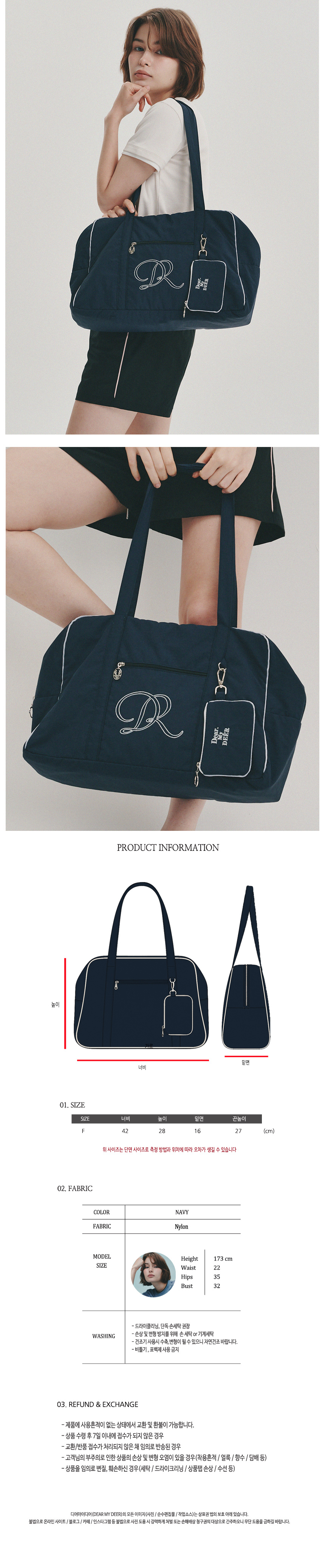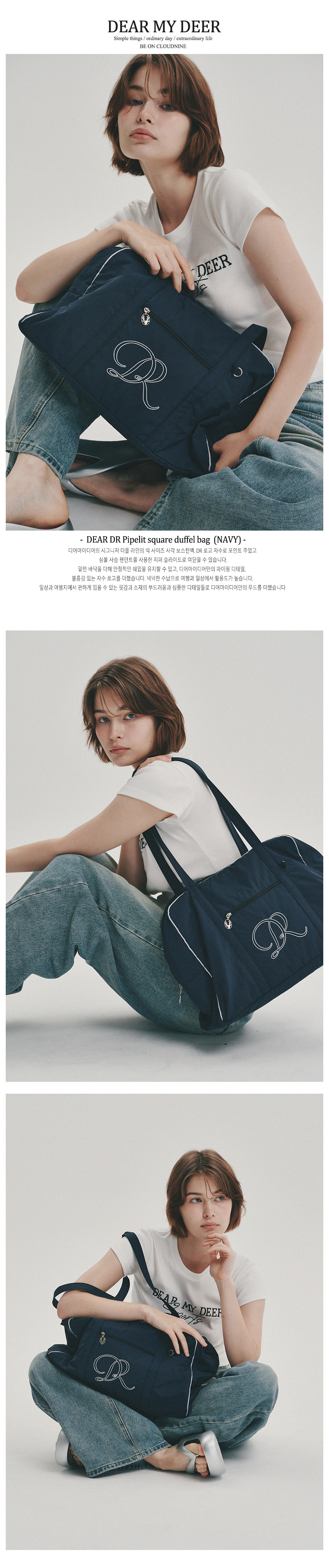 디어 DR 파이프릿 스퀘어 더플백 (네이비)