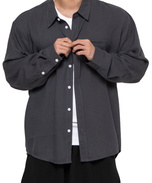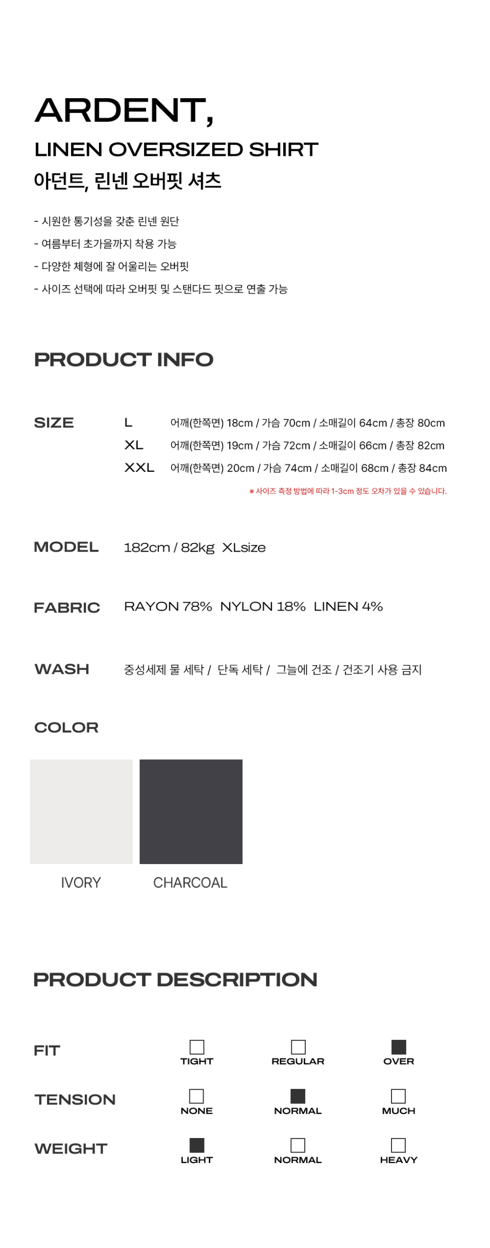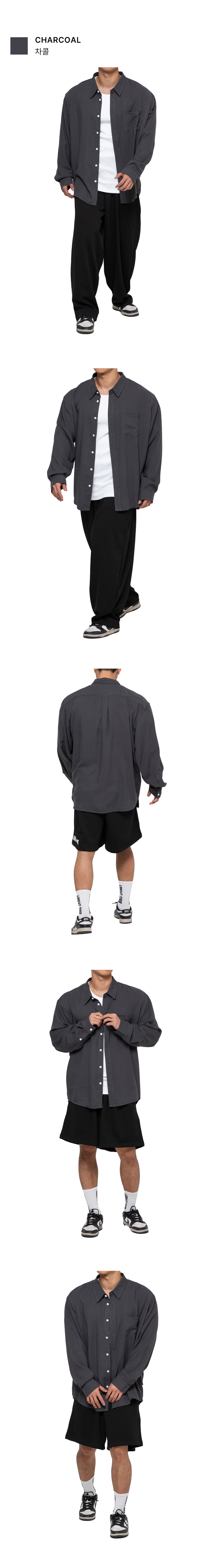 [M~4XL] 올데이 린넨 오버핏 반팔 셔츠_차콜