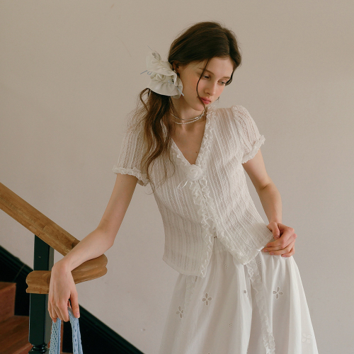 FUZZY FRILL KNIT CARDIGAN_IVORY