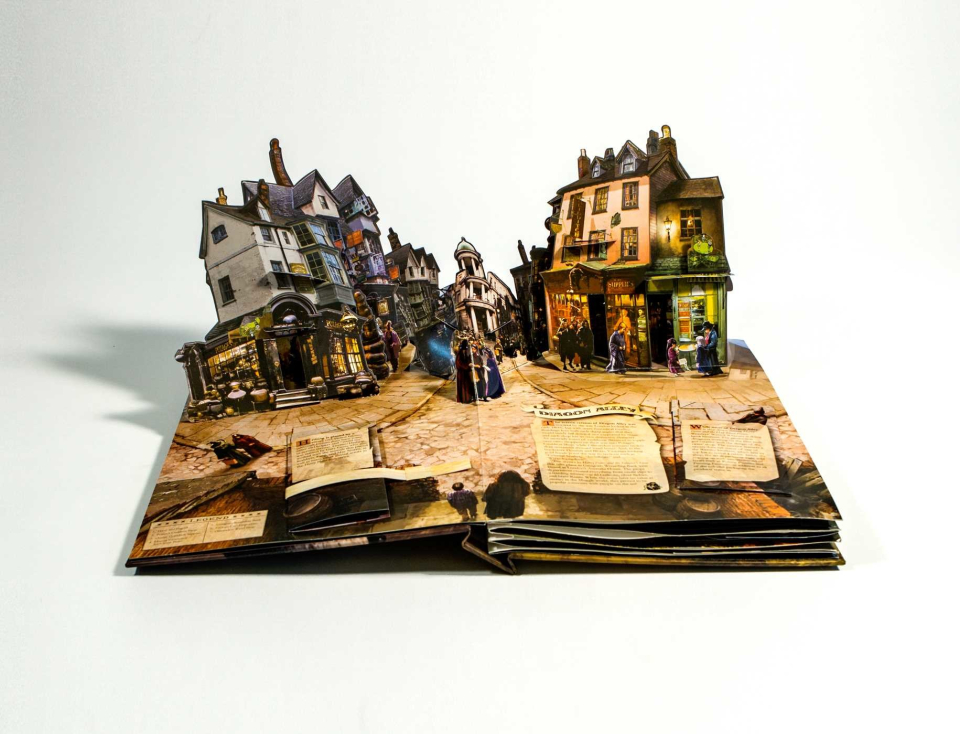 이 수집용 Harry Potter: A Pop-Up Book은 영화 제작 과정에서 탄생한 창의적인 세계를 바탕으로 만들어졌으며, 시리즈 전편의 콘셉트 아티스트인 앤드류 윌리엄슨의 정교한 원화가 수록되어 있습니다. 트리위저드 시합, 다이애건 앨리, 호그와트 성 같은 상징적인 장소와 장면들이 팝업 형태로 생생하게 펼쳐지며, 영화 속 마법 세계를 3D로 경험할 수 있습니다.