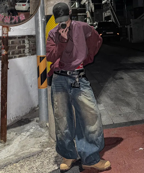 레더포켓 커브드 데님 팬츠[논페이드인디고]