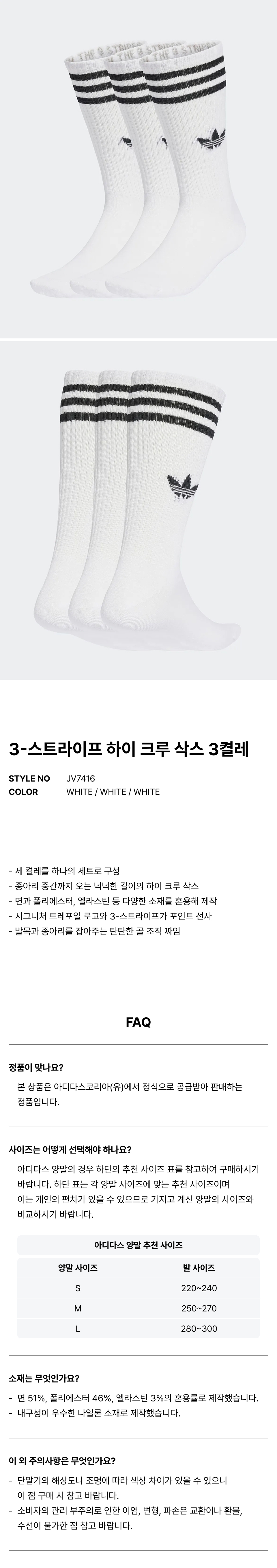 3-스트라이프 하이 크루 삭스 3켤레 - 화이트 / JV7416