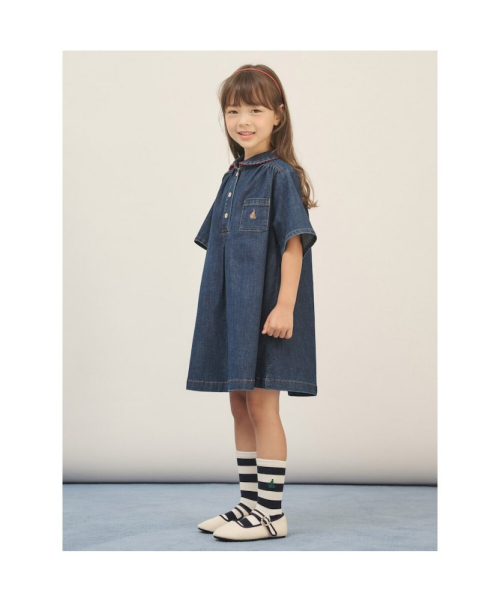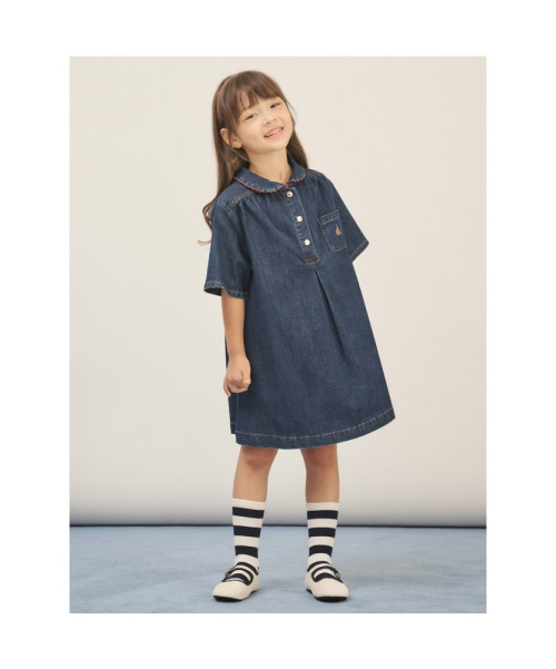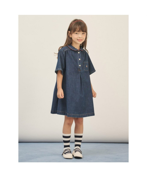 워싱 컬러가 세련된 데님 미니 원피스입니다. 짧은 기장에 A라인 실루엣으로 활동하기 편할 뿐만 아니라 전체적으로 발랄한 분위기를 더해줍니다. 칼라의 레드 포인트와 금장 단추가 고급스러우면서도 세련된 느낌을 주며 단독으로 입어도 멋스럽습니다. 빈폴키즈는 아이가 안심하고 입을 수 있는 옷을 만들기 위해 원단부터 완제품까지 철저한 '아동 유해성 안전 검사'를 진행하고 있습니다.