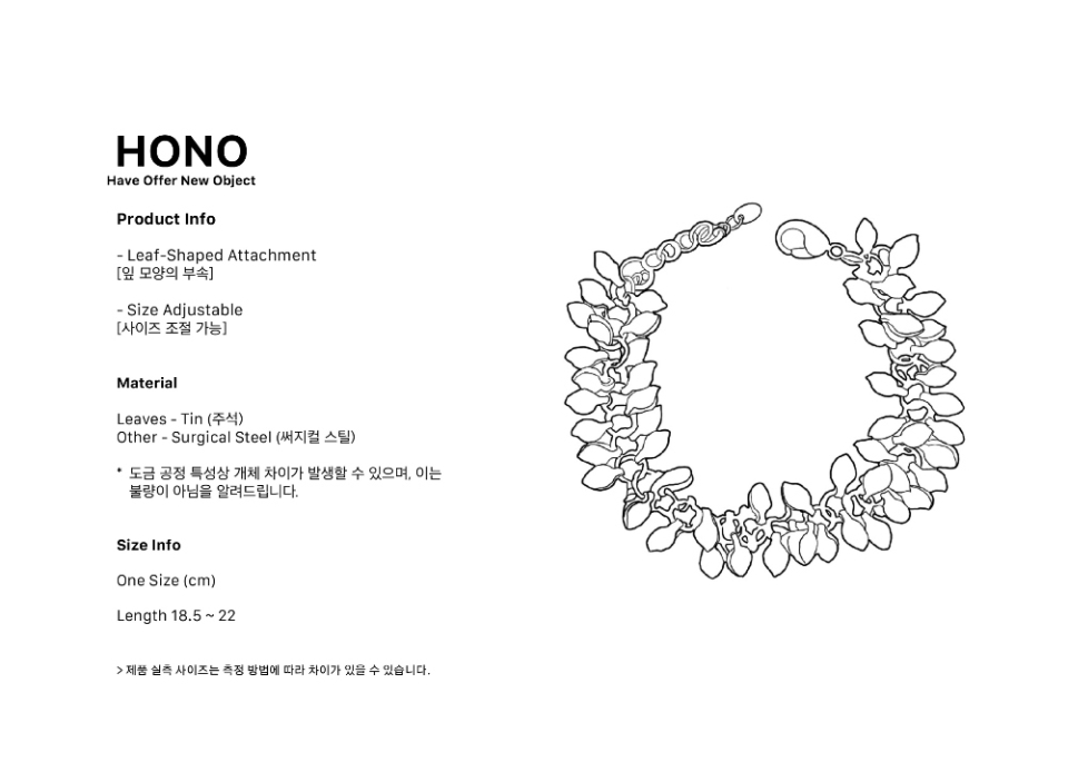 [Material] Leaves - Tin (주석) Other - Surgical Steel (써지컬 스틸) [Size] Length 18.5 ~ 22 cm *도금 공정 특성상 개체 차이가 발생할 수 있으며, 이는 불량이 아님을 알려드립니다.