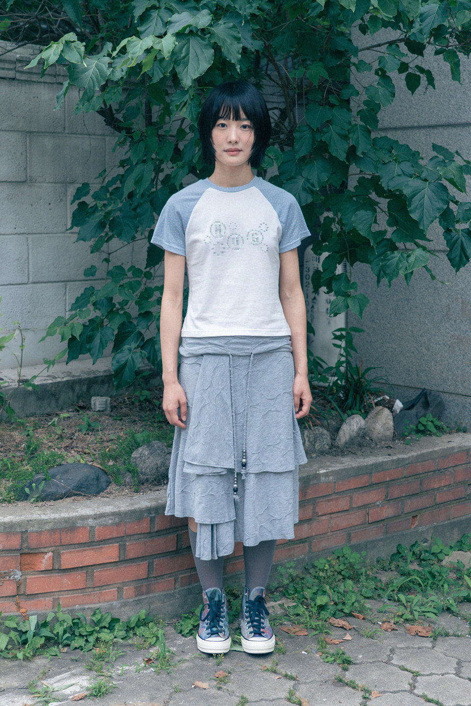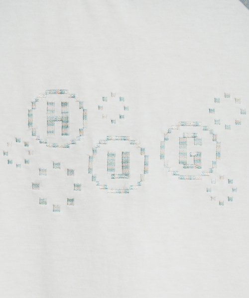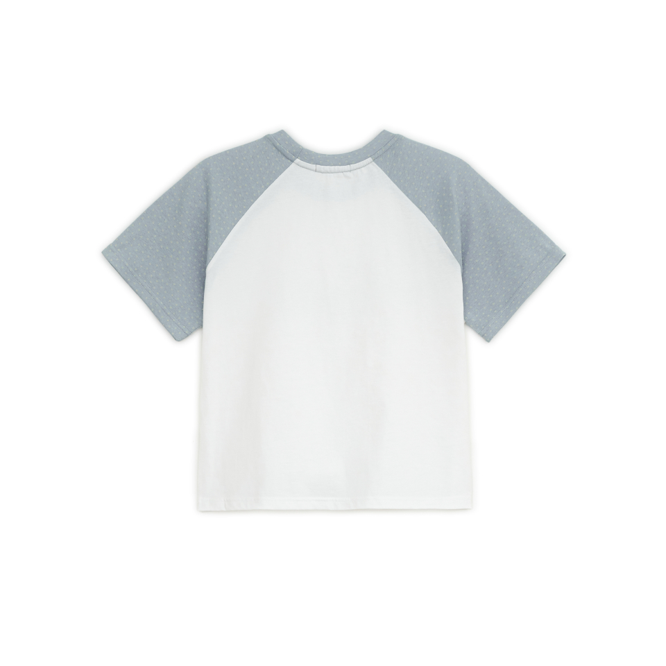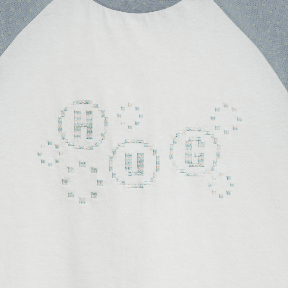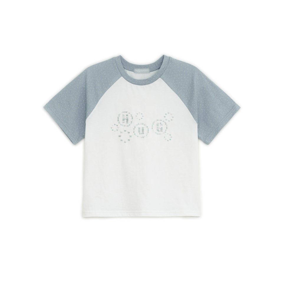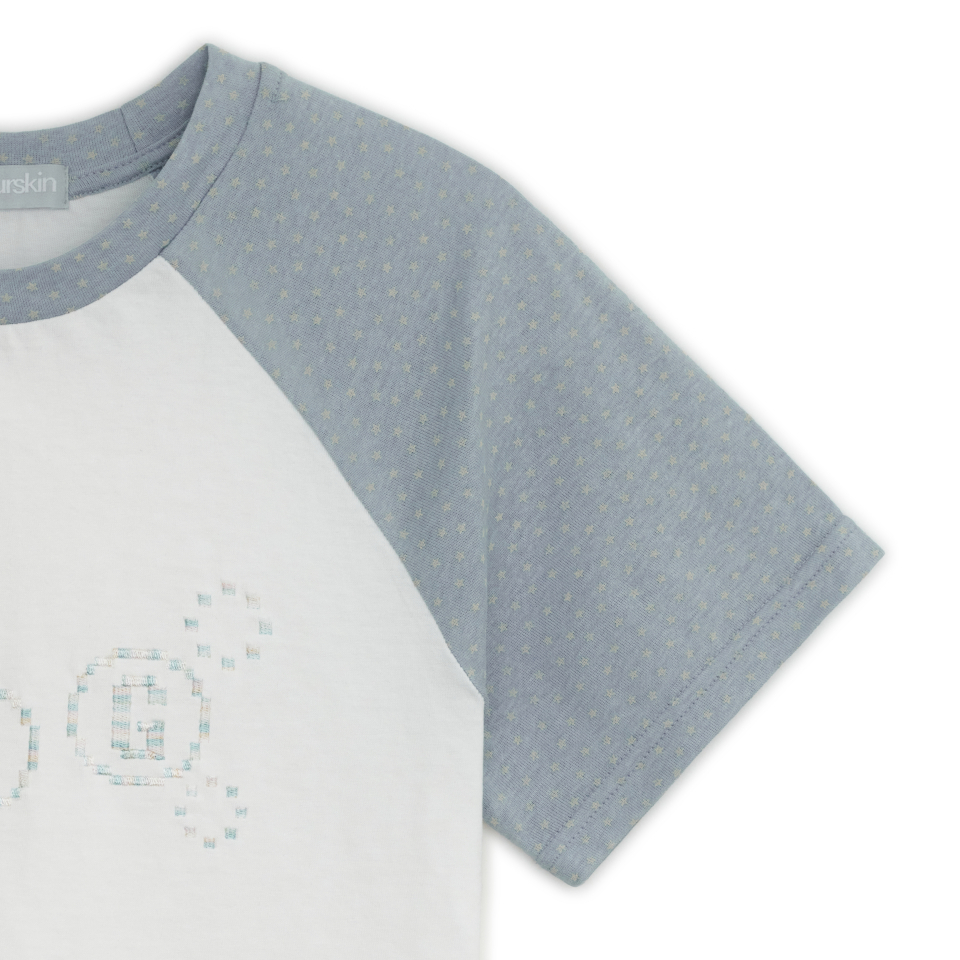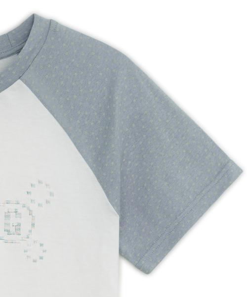 픽셀 자수 포인트와 소매 별 패턴의 레귤러 핏 티셔츠