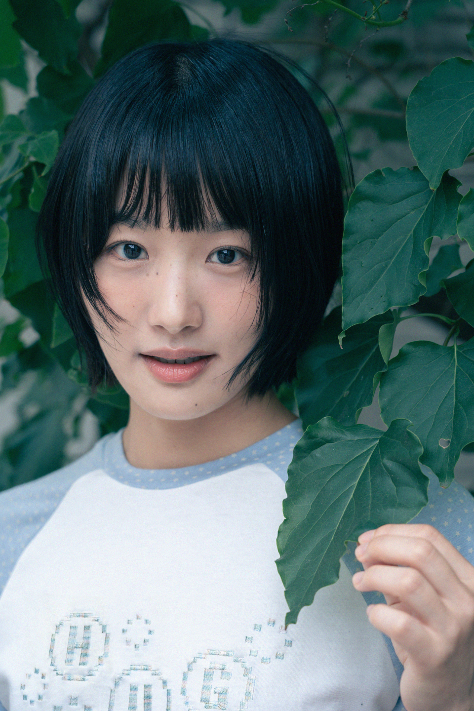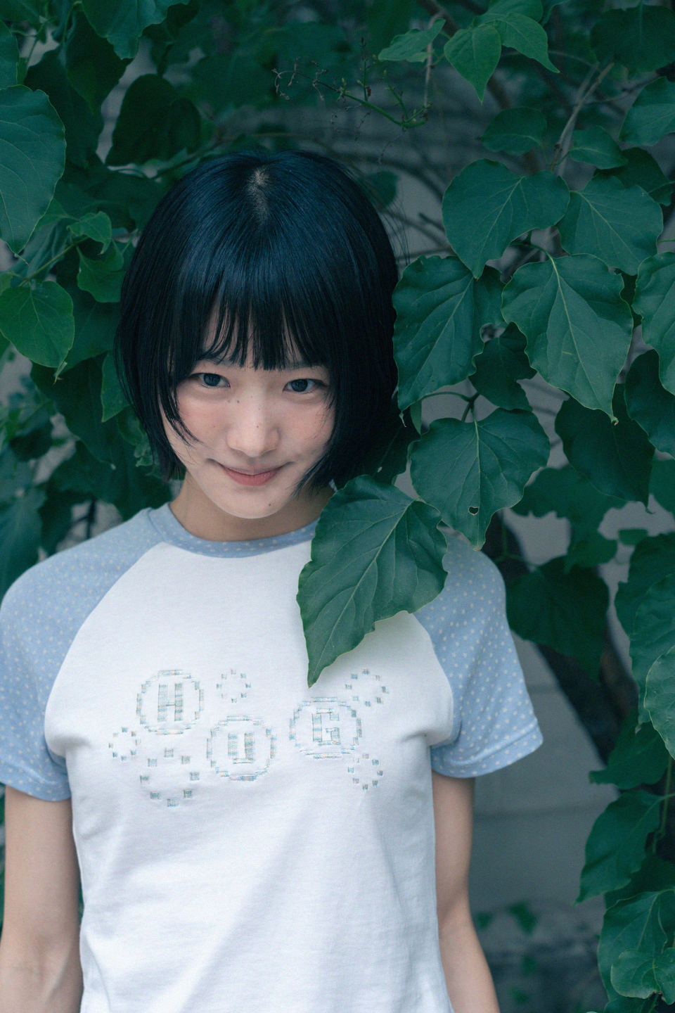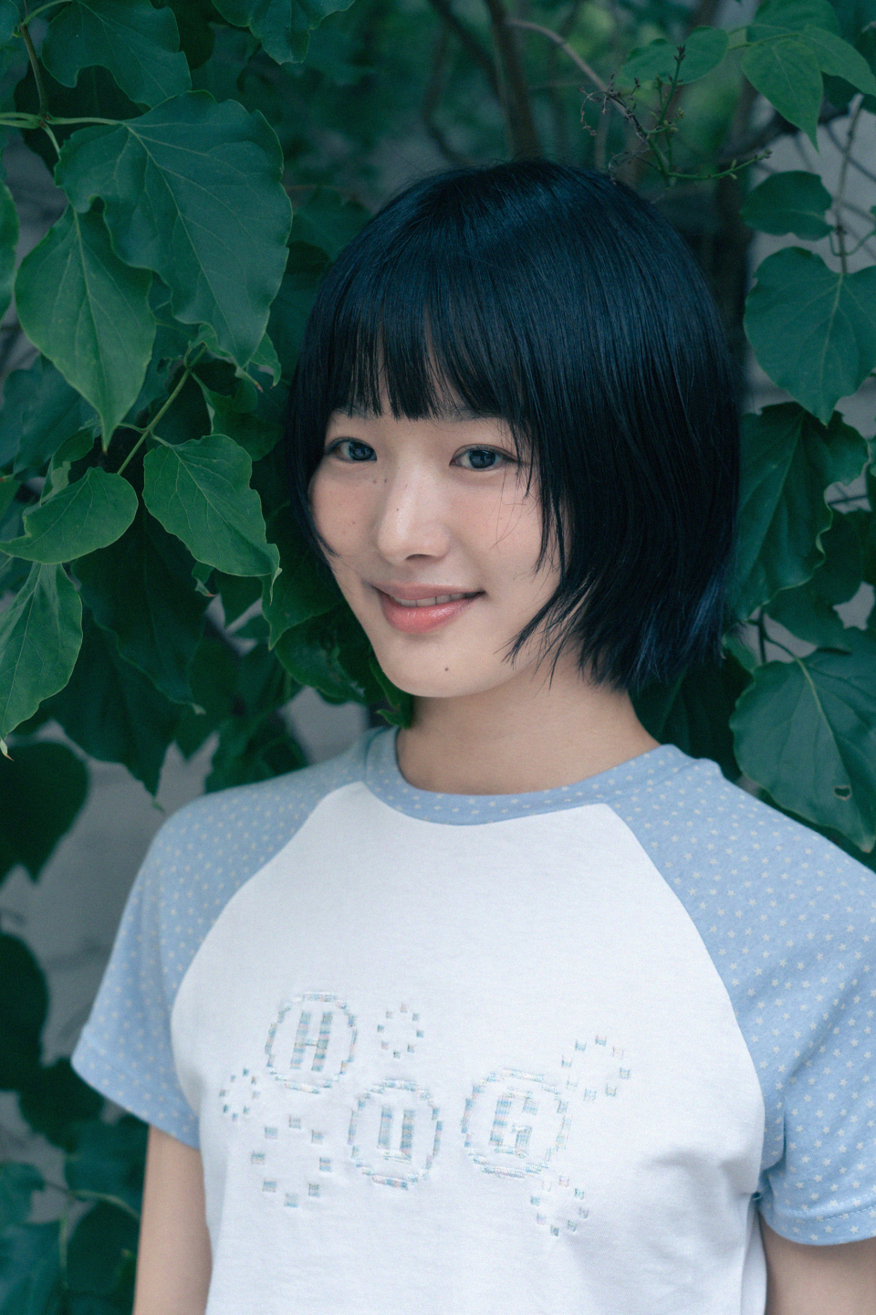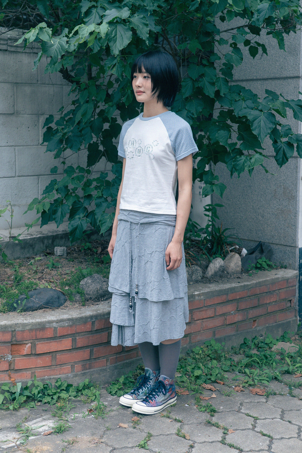 픽셀 자수 포인트와 소매 별 패턴의 레귤러 핏 티셔츠