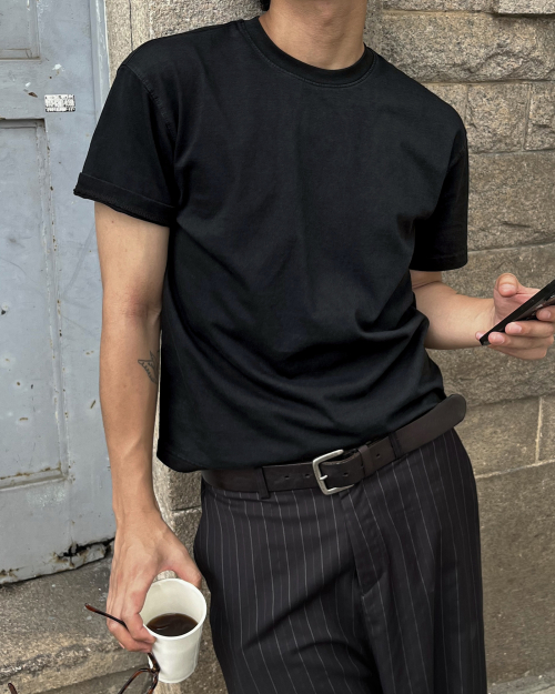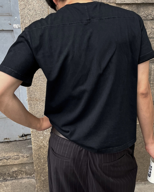 460G 크롭 컷 헤비 피그먼트 티셔츠-워시드 블랙-