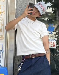 460G 크롭 컷 헤비 피그먼트 티셔츠-내츄럴 아이보리-