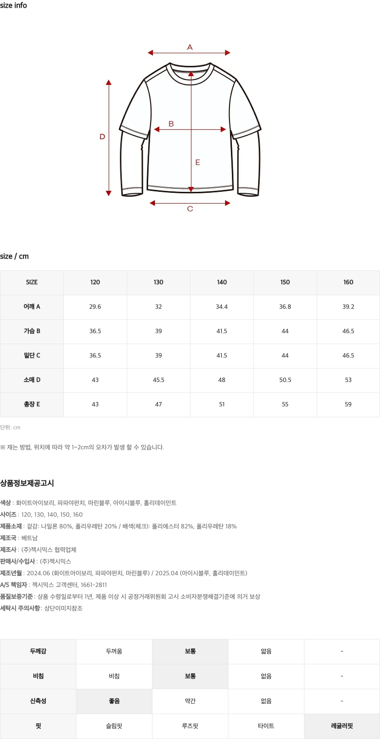 상 ⋅ 하의 : 130 / 130