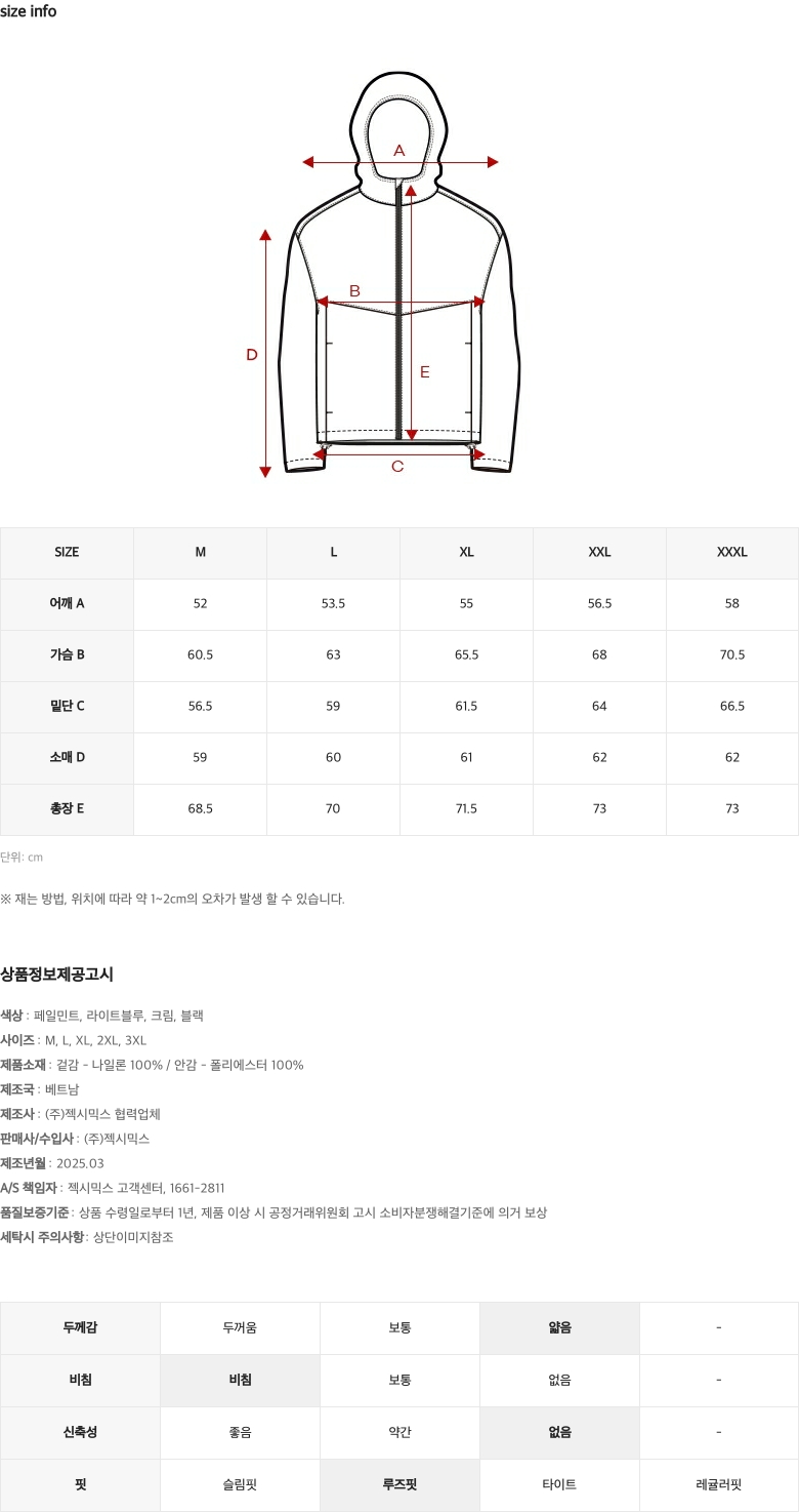 에어플로우 맨즈 후드 바람막이 XMK2JL1001