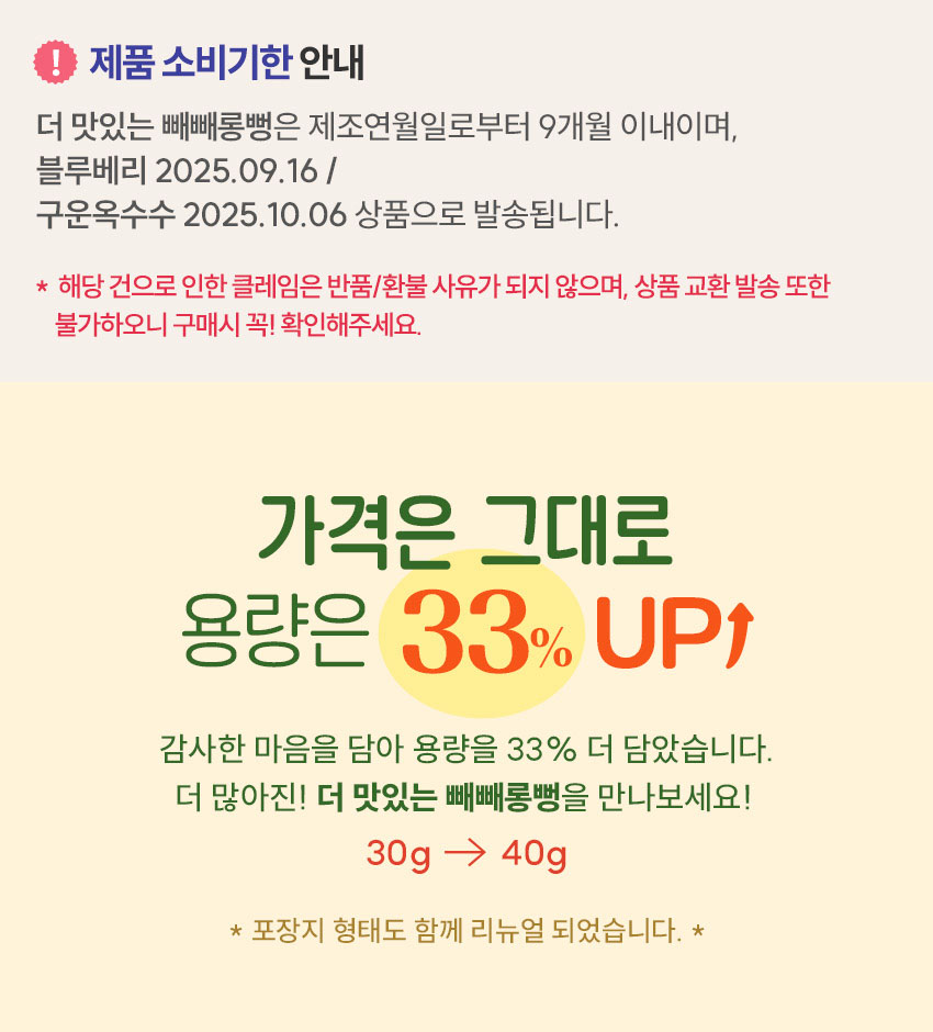 더 맛있는 빼빼롱뻥 6봉(구운옥수수/블루베리)
