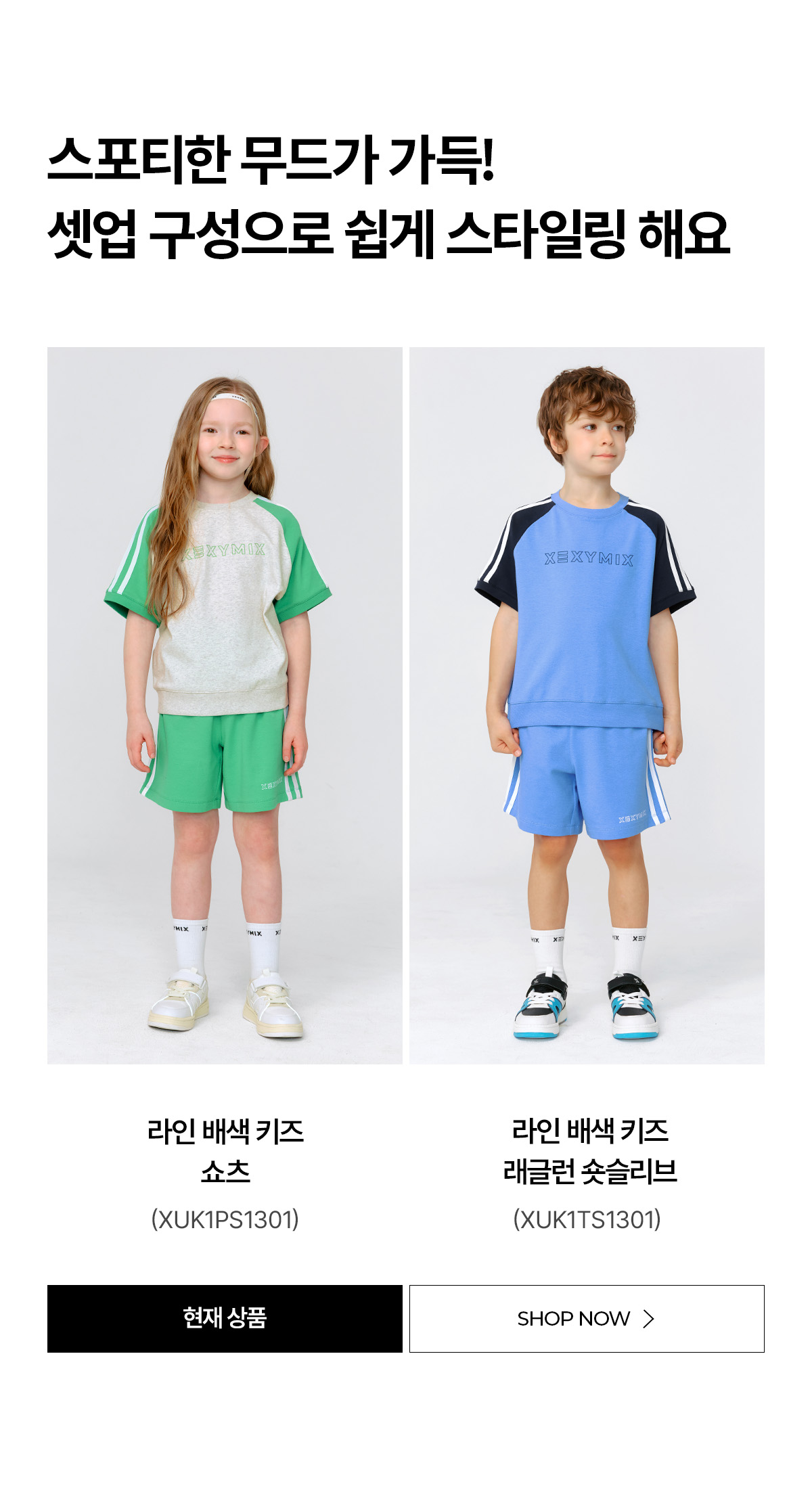 젝시믹스 키즈(XEXYMIX KIDS)는 아이의 활동성을 고려한 설계로, 놀이부터 일상까지 편안함과 기능성을 더해 모든 순간을 함께하는 키즈 액티브웨어 브랜드입니다.