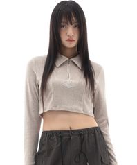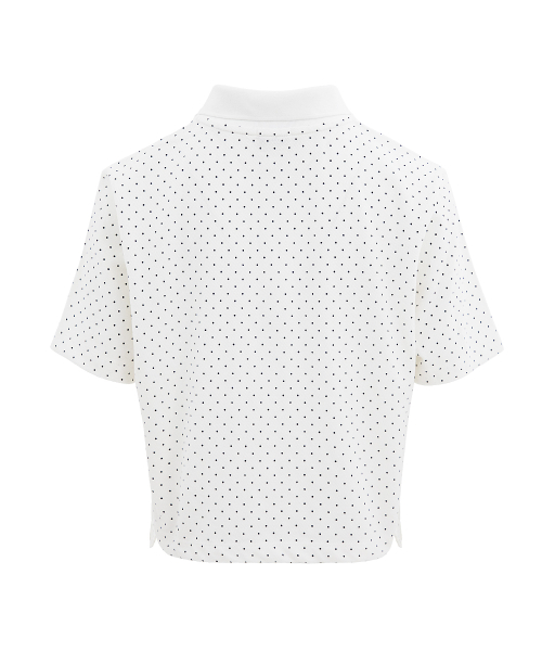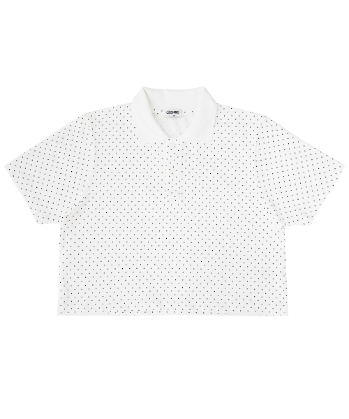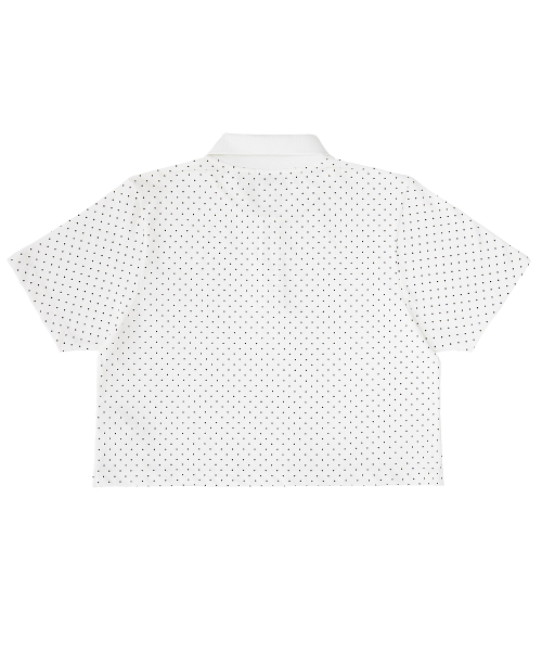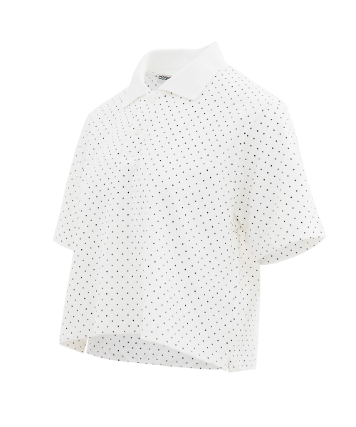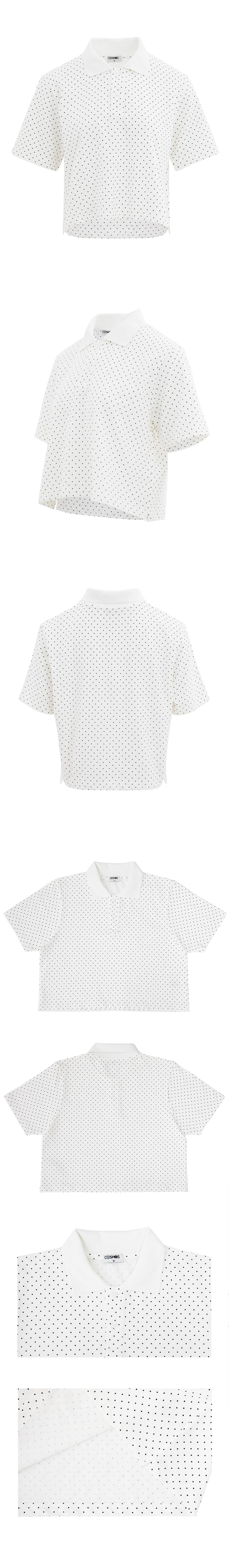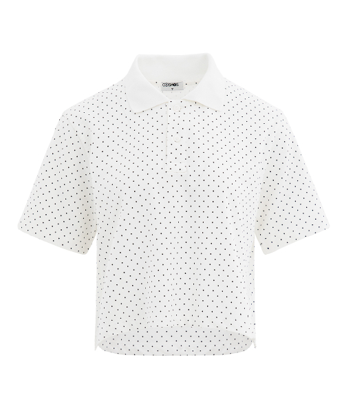 카라 반팔 티셔츠. 핀 도트 패턴의 카라 티셔츠.