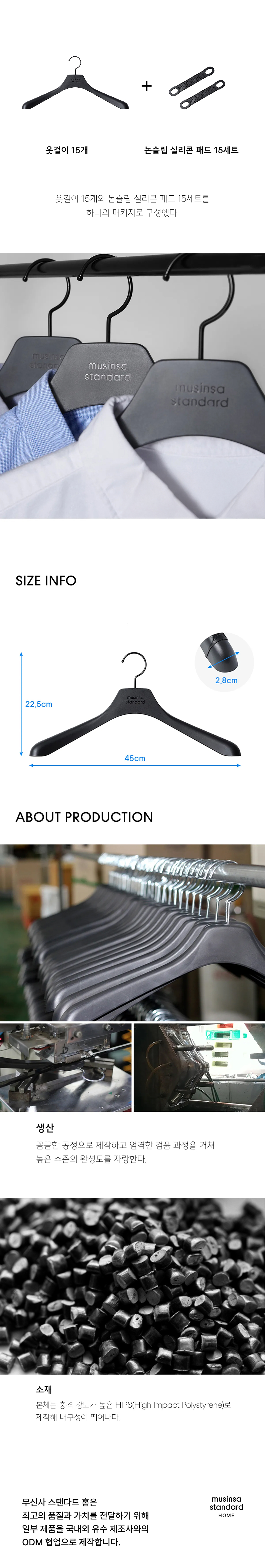 HIPS 상의용 옷걸이 15팩 [블랙]