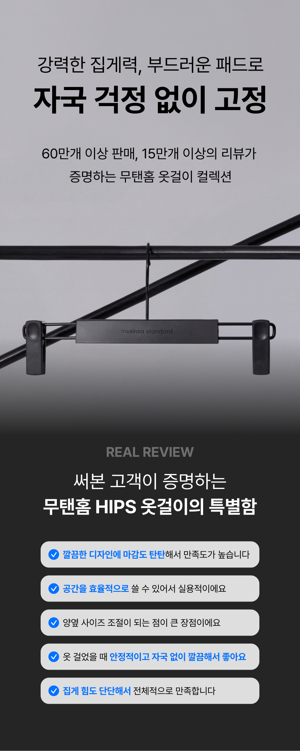 HIPS 상의용 옷걸이 15팩 [블랙]