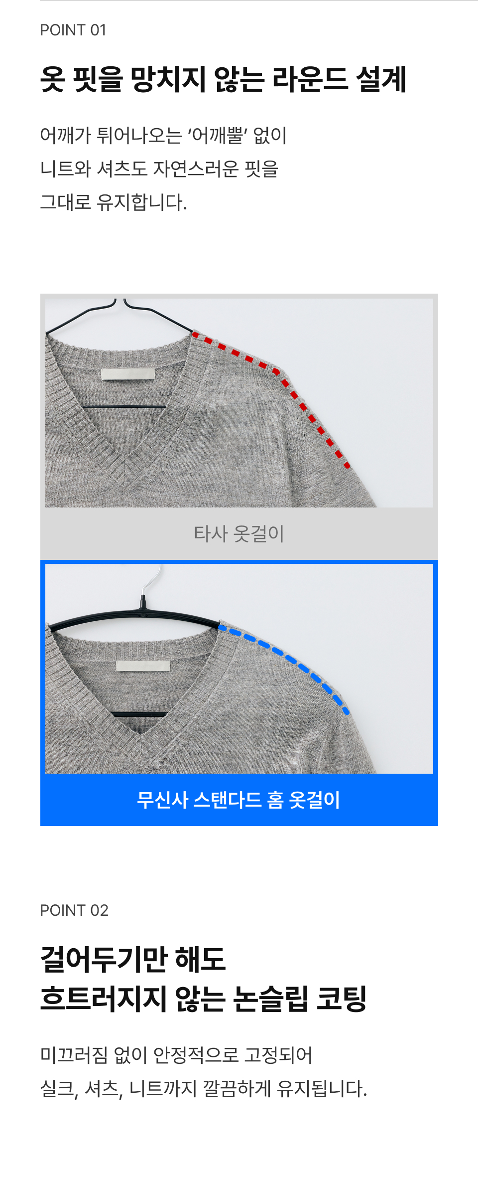 논슬립 어깨뿔방지 라운드 옷걸이 20팩 [그레이]