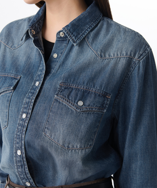 우먼즈 데님 웨스턴 셔츠 [미디엄 인디고]