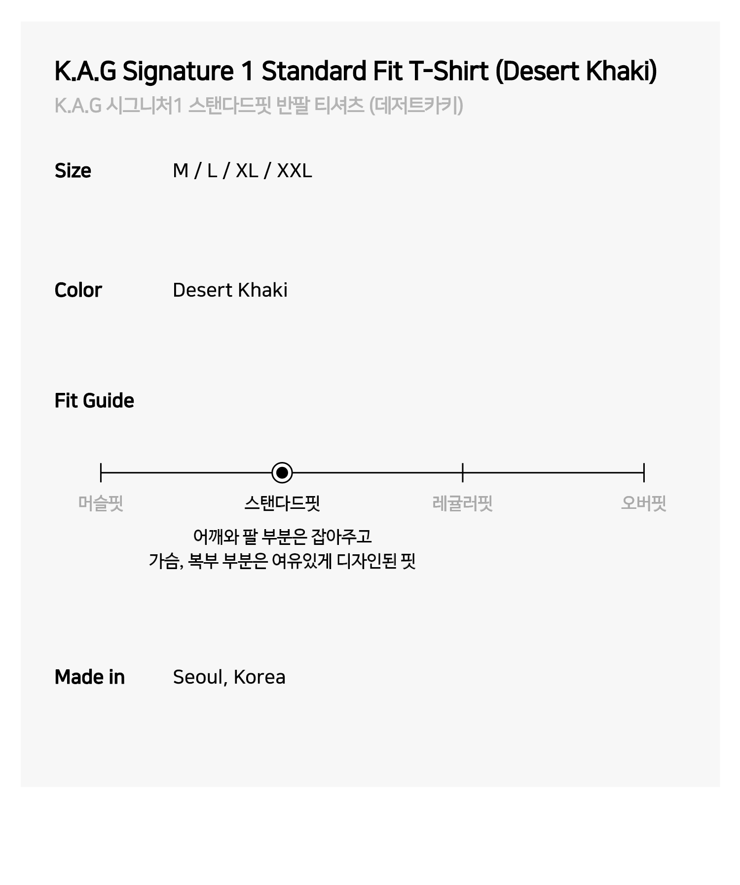 K.A.G 시그니처1 스탠다드핏 반팔 티셔츠 (Desert Khaki)