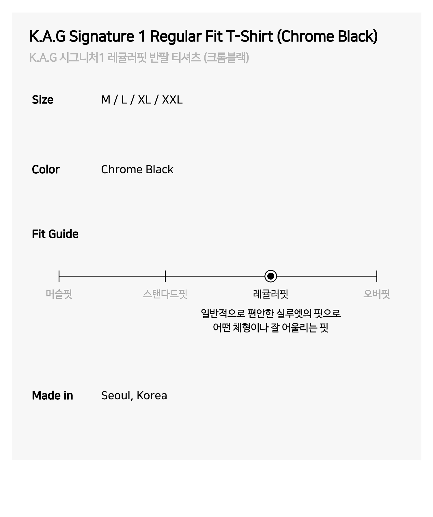 K.A.G 시그니처1 레귤러핏 반팔 티셔츠 (Chrome Black)