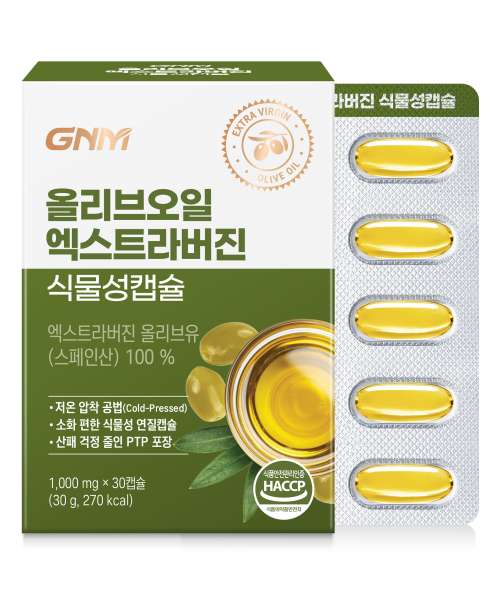 GNM 올리브오일 엑스트라버진 식물성 캡슐 30캡슐 x 1박스(총 30캡슐) / 유기농 올리브유 100% 스페인산