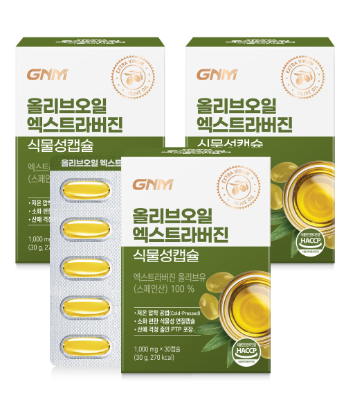 GNM 올리브오일 엑스트라버진 식물성 캡슐 30캡슐 x 3박스(총 90캡슐) / 유기농 올리브유 100% 스페인산