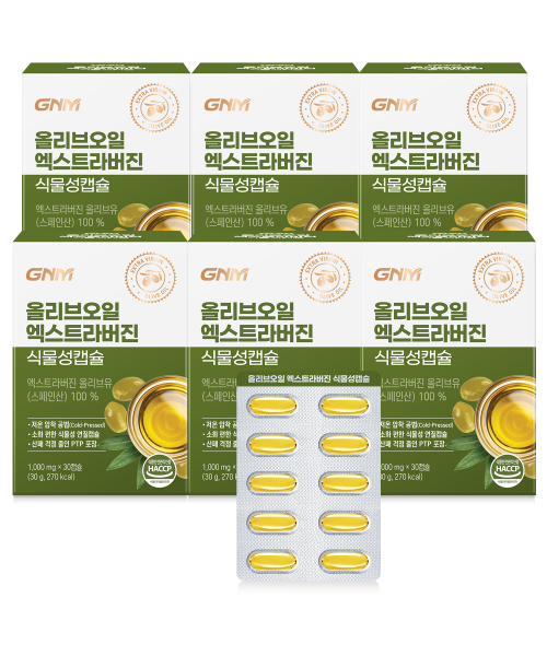 GNM 올리브오일 엑스트라버진 식물성 캡슐 30캡슐 x 6박스(총 180캡슐) / 유기농 올리브유 100% 스페인산