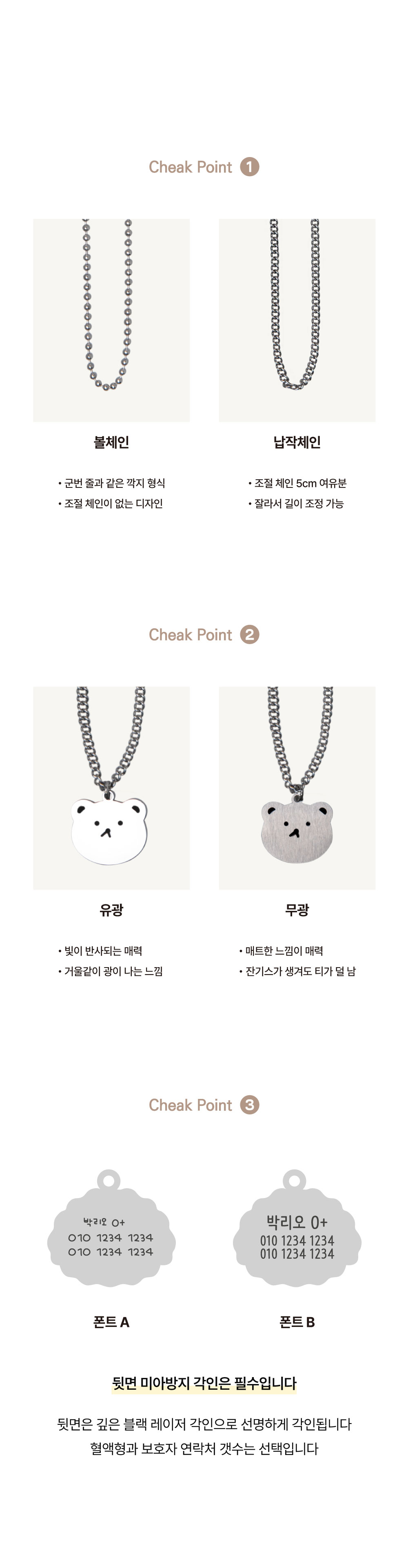 써지컬 뽀글 원형 미아방지 목걸이_3TYPE