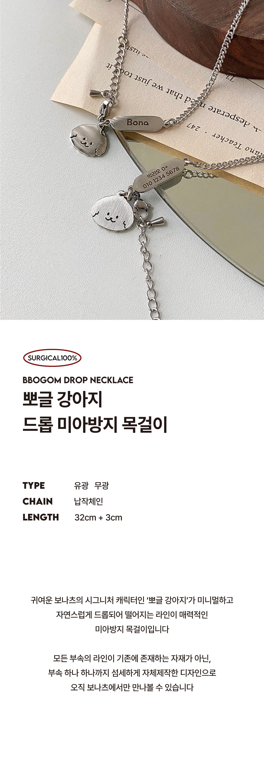 써지컬 뽀글 강아지 드롭 미아방지 목걸이
