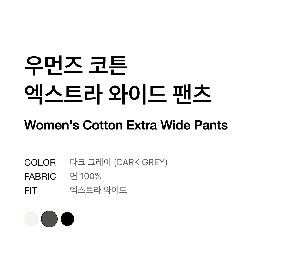 우먼즈 코튼 엑스트라 와이드 팬츠 [다크 그레이]