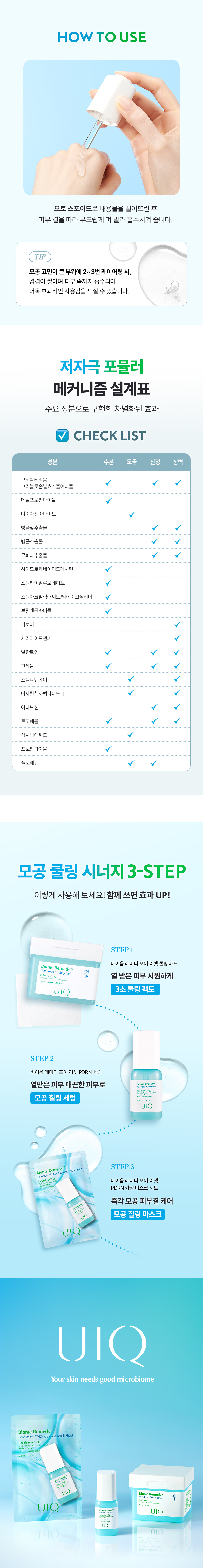 유이크(UIQ)는 피부 건강의 근원을 탐구합니다. 독자 개발한 스킨 마이크로바이옴 원료를 기본으로 고객의 유의미한 피부 변화를 위해 연구하고 탐구하는 스킨케어 브랜드입니다.