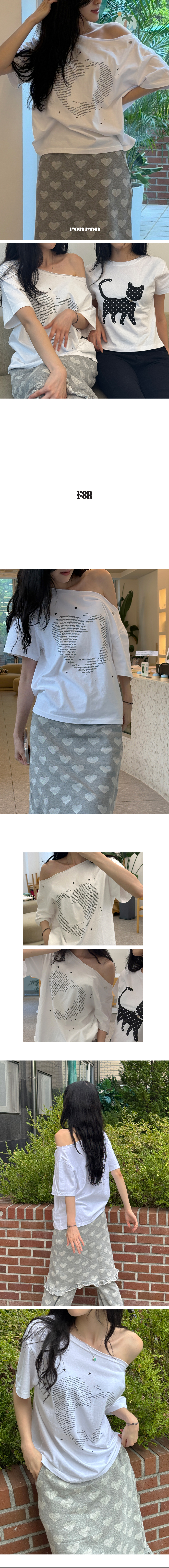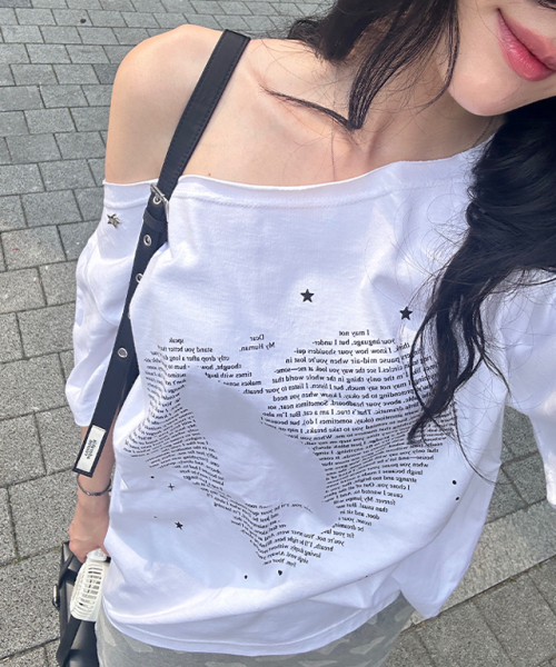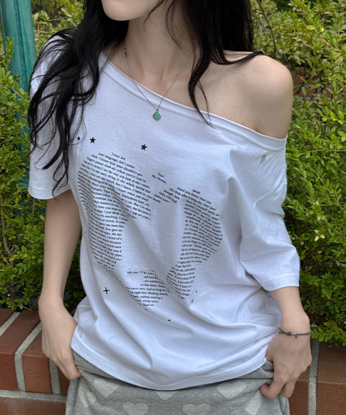 TYPE CAT OFF SHOULDER T SHIRTS WHITE
