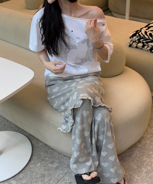 레터즈 세미 오프숄더 5부 티셔츠 ( 플라워 아이보리 )