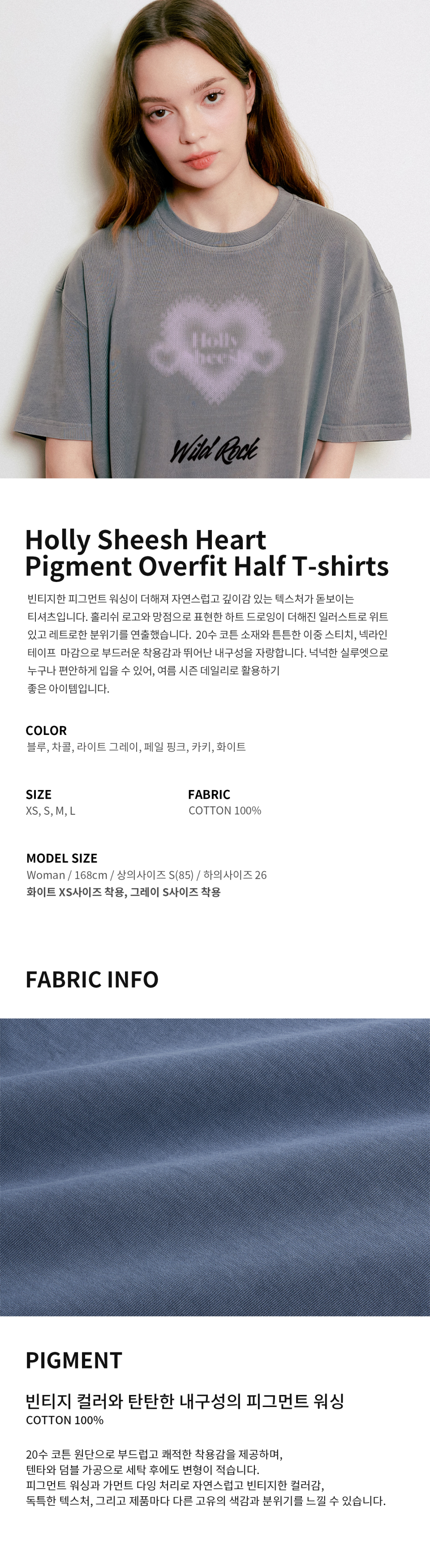 Hollysheesh Dreamist Heart 피그먼트 오버핏 반팔 티셔츠_6 COL (크롭 포함)