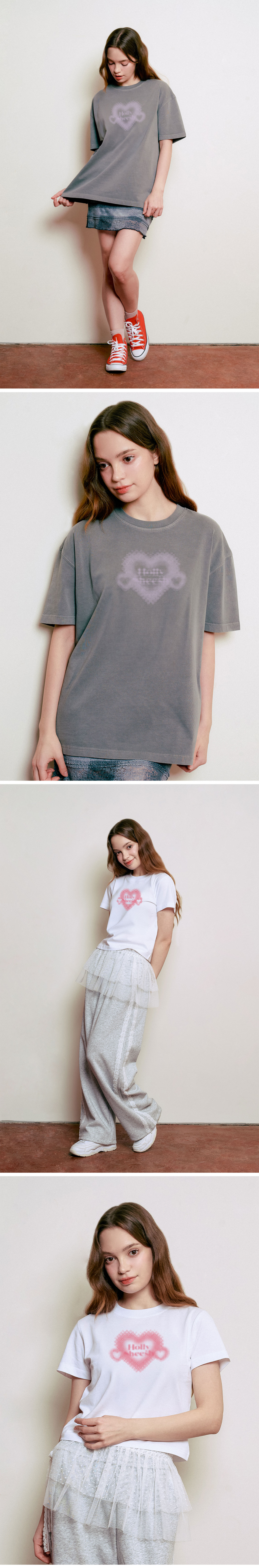 Hollysheesh 하트 피그먼트 오버핏 반팔 티셔츠_6 COL (크롭 포함)