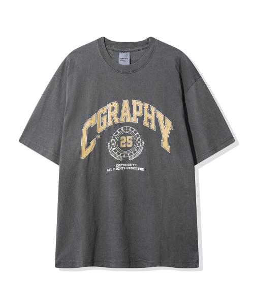 피그먼트 25 엠블럼 반소매 티셔츠_차콜