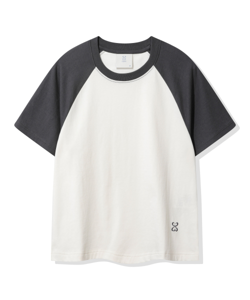 (우먼) 레글런 배색 반소매 티셔츠_크림
