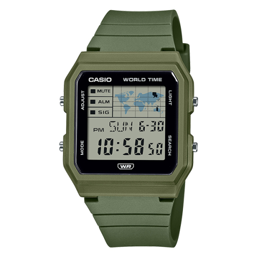 "이 특별한 모델은 디스플레이 상단에 세계지도 디자인이 적용되어, 현재 사용자의 시간대를 한눈에 확인할 수 있는 독특한 구성을 자랑합니다. 또한 밴드는 바이오 기반 레진 소재로 제작되어, 재생 가능한 유기 자원을 활용함으로써 환경에 미치는 영향을 줄이는 데 기여합니다. 기능적으로는 LED 조명 디스플레이, 스톱워치, 타이머, 세계 시간, 알람 등 일상에 유용한 실용 기능들을 두루 갖추고 있어, 실용성과 스타일을 모두 만족시키는 모델입니다."