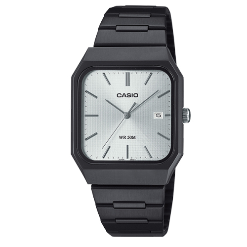 각진 케이스와 다이얼 컬러가 클래식한 느낌을 주는 모델입니다. 심플한 아날로그시계에 날짜가 표시되어 있습니다. 포멀한 스타일과 캐주얼한 스타일 모두 잘 어울리는 디자인입니다.