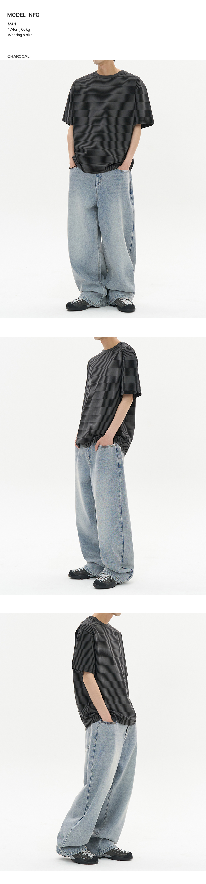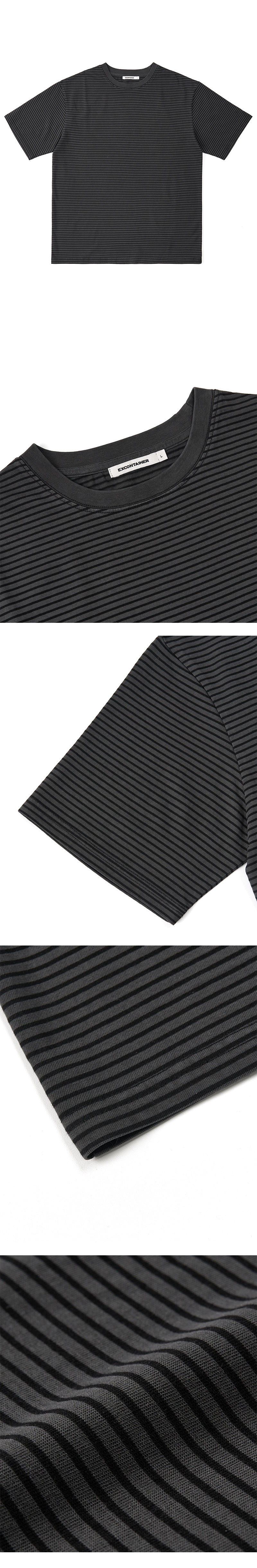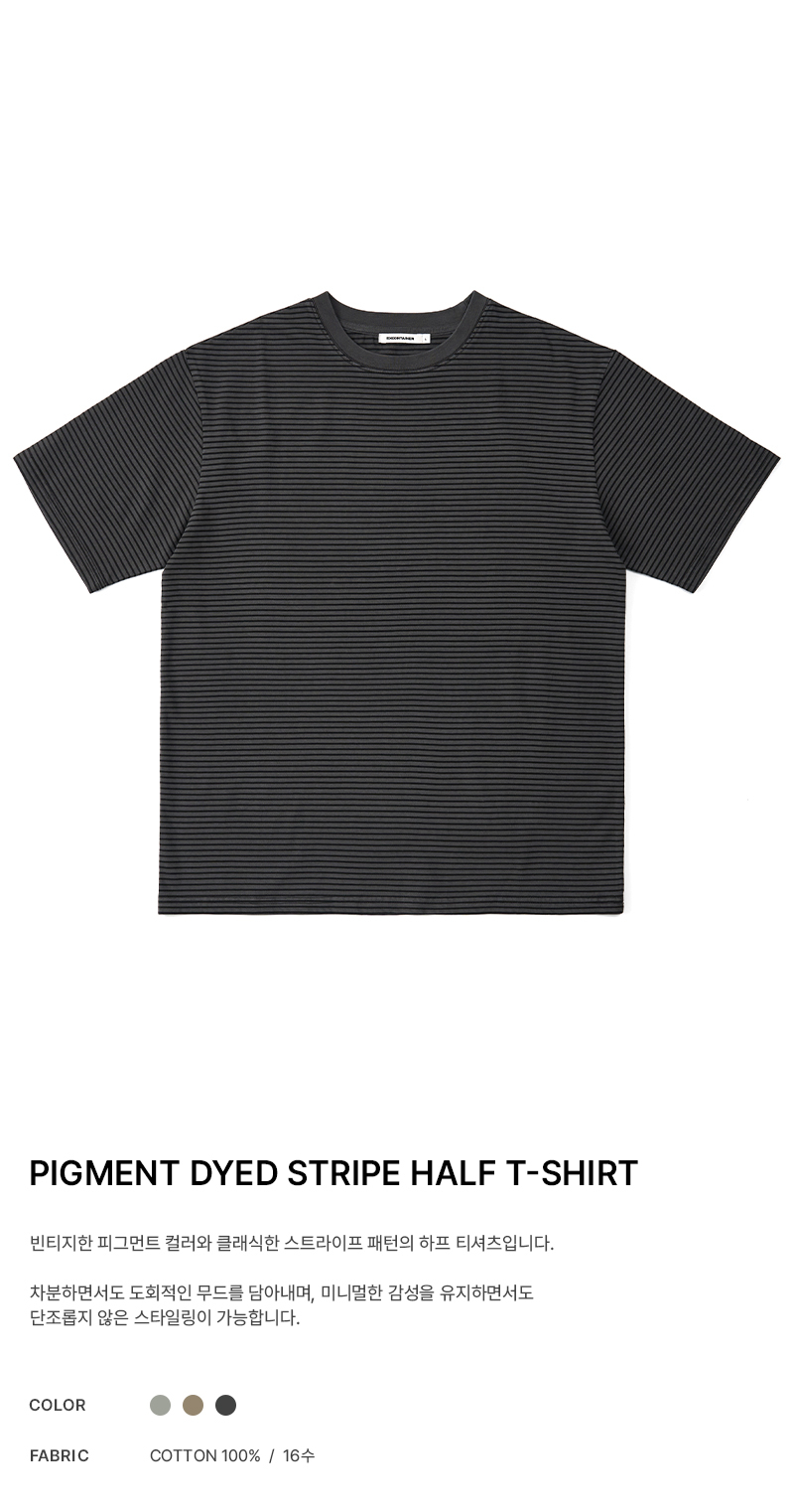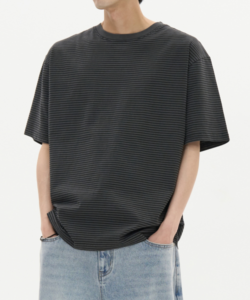 피그먼트 다이드 스트라이프 하프 티셔츠 (CHACOAL)