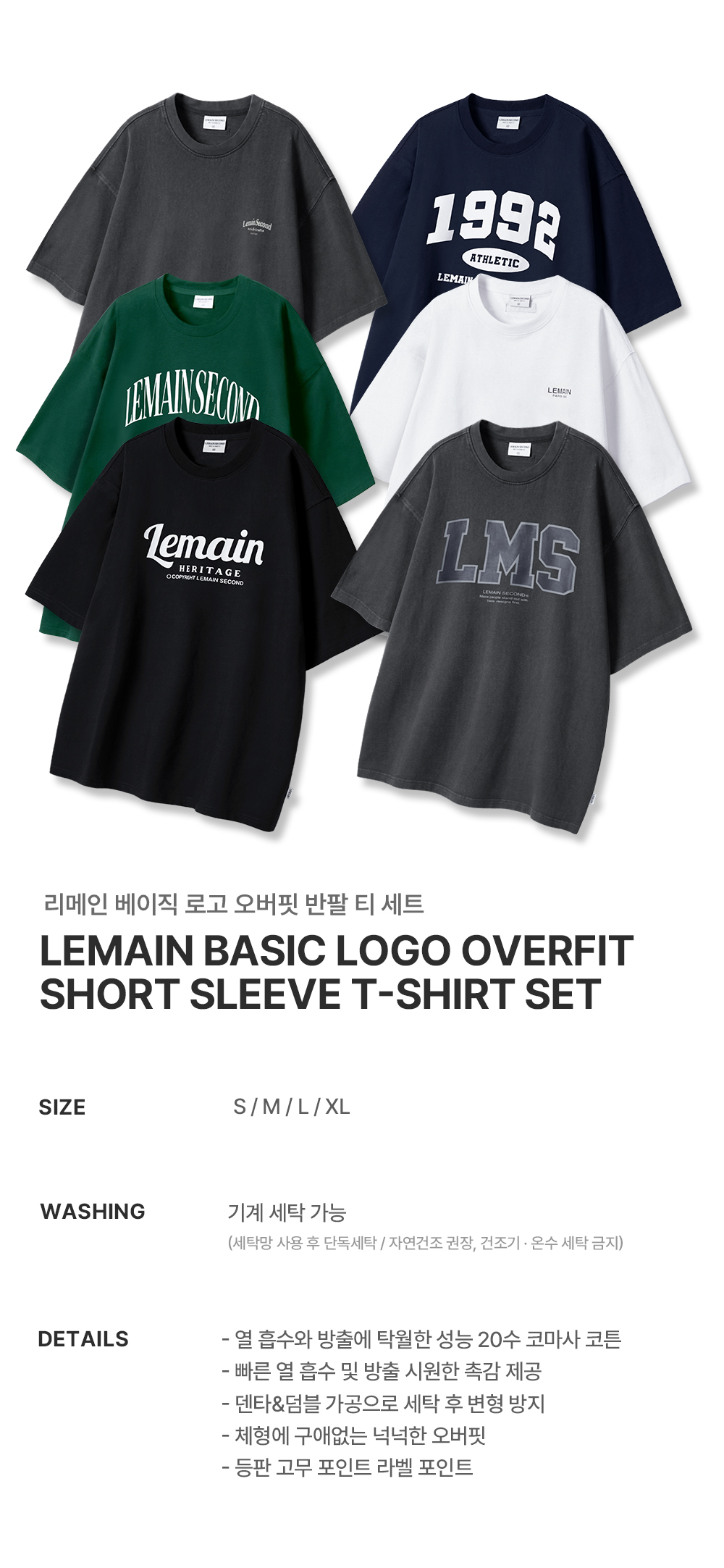 [SET] 리메인 베이직 로고 오버핏 반팔 티_6 STYLE SELECT