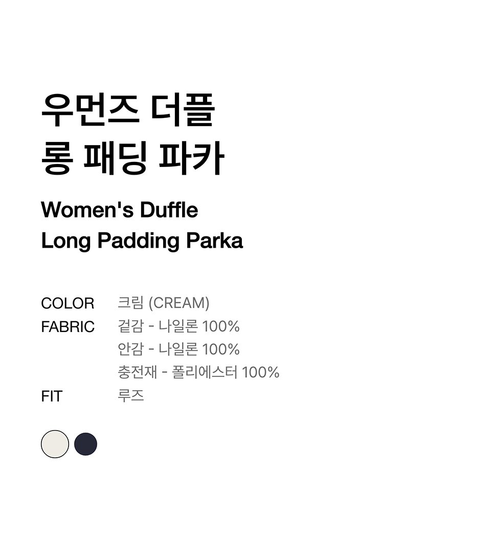 우먼즈 더플 롱 패딩 파카 [다크 네이비]
