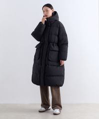우먼즈 오버사이즈 후디드 롱 다운 파카 [블랙]