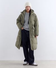 우먼즈 오버사이즈 후디드 롱 다운 파카 [카키]