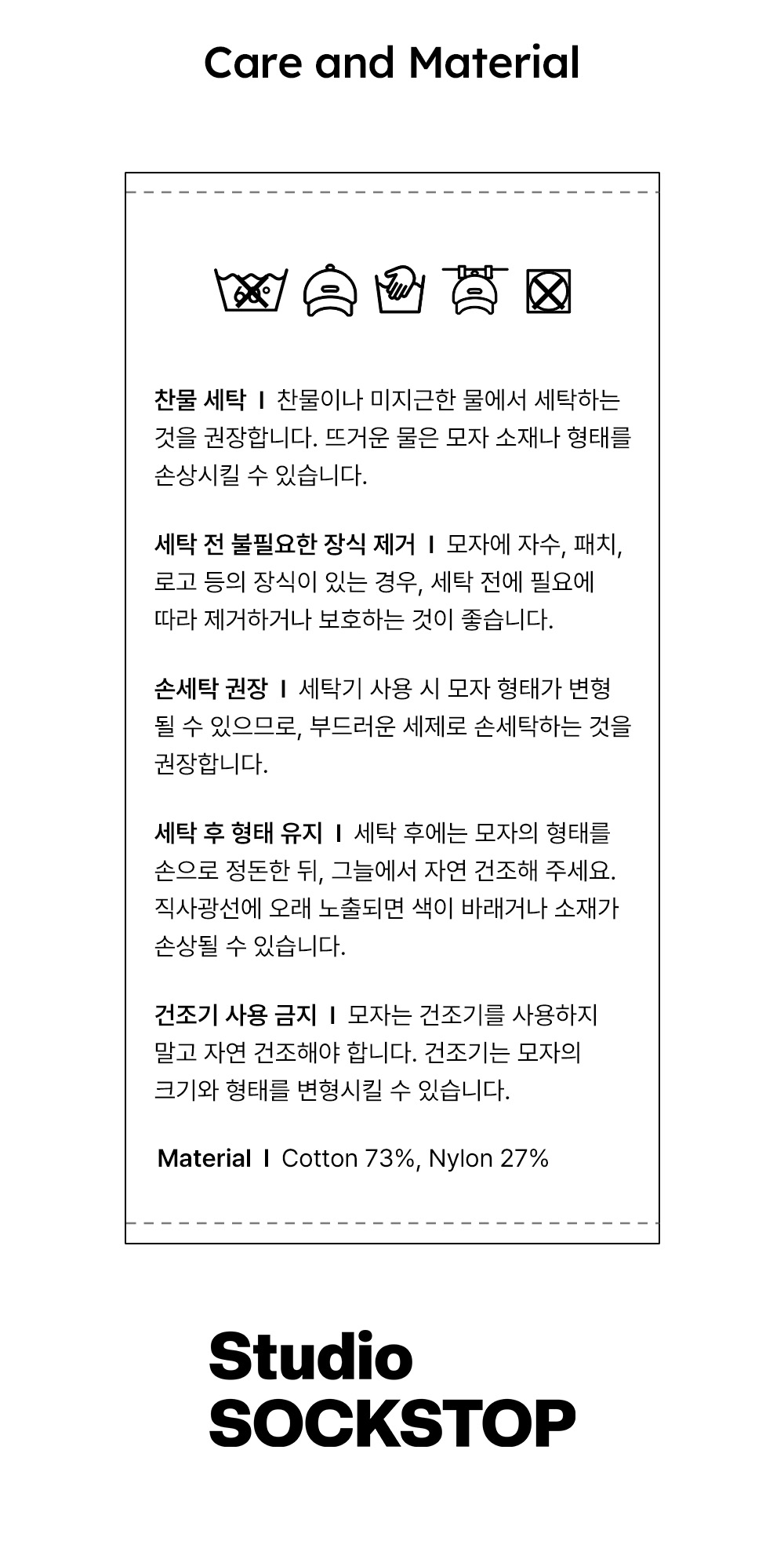 스튜디오 싹스탑(STUDIO SOCKSTOP)은 30년 이상의 역사를 가진 양말 브랜드로, 국내 생산만을 고집합니다.