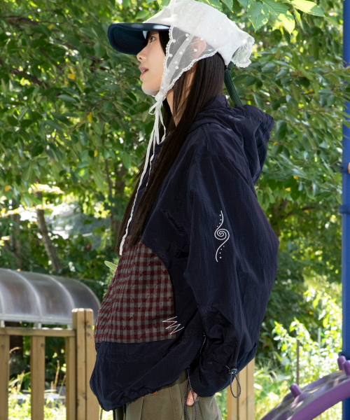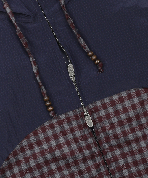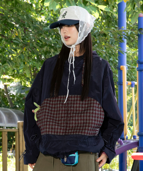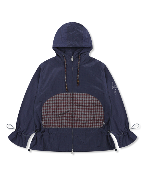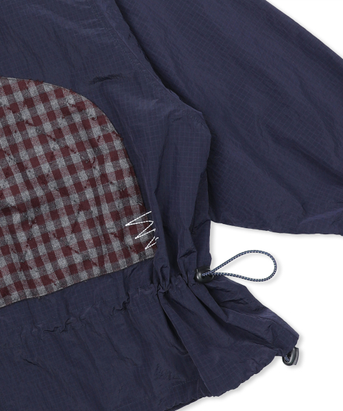 WXJ029 히나타 체크 배색 립스탑 윈드브레이커 (NAVY)