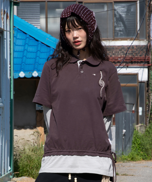 WXT070 모넬로 레이어드 스트라이프 롱슬리브 (BROWN)