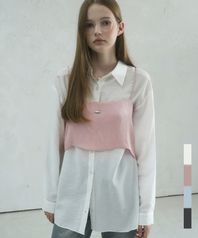 사이드 셔링 체크 배색 프릴 버튼 레이어드 롱슬리브 티셔츠 [블랙]